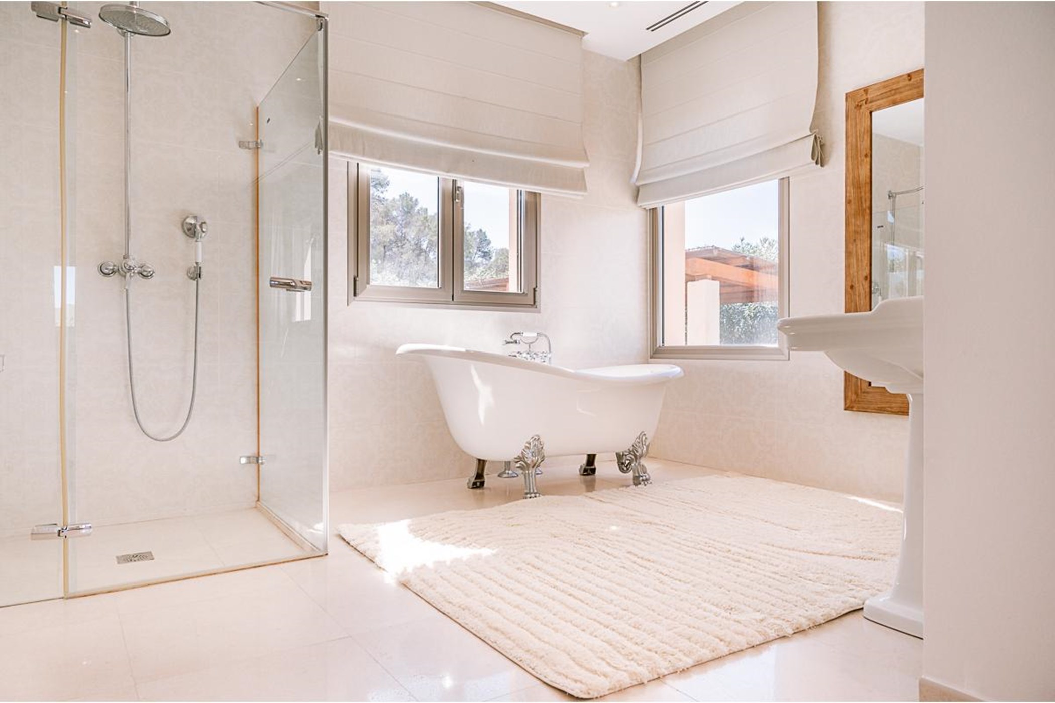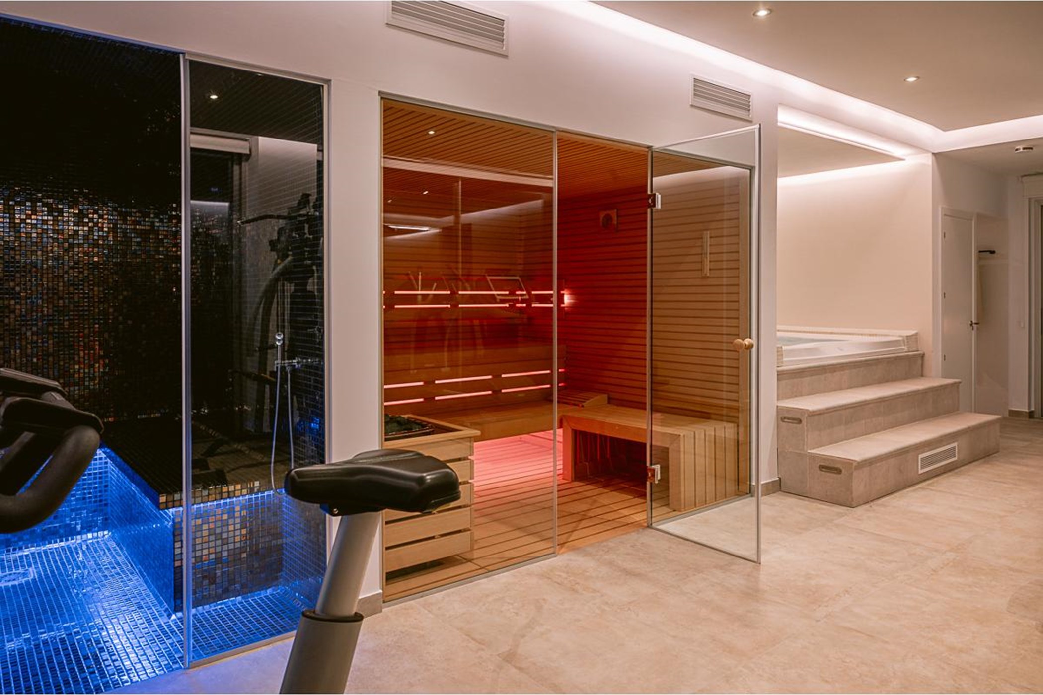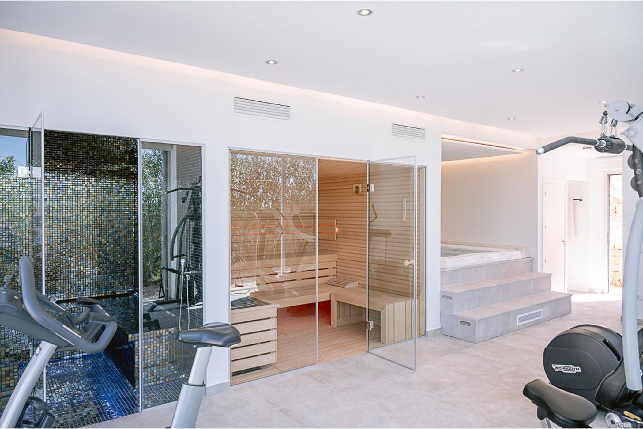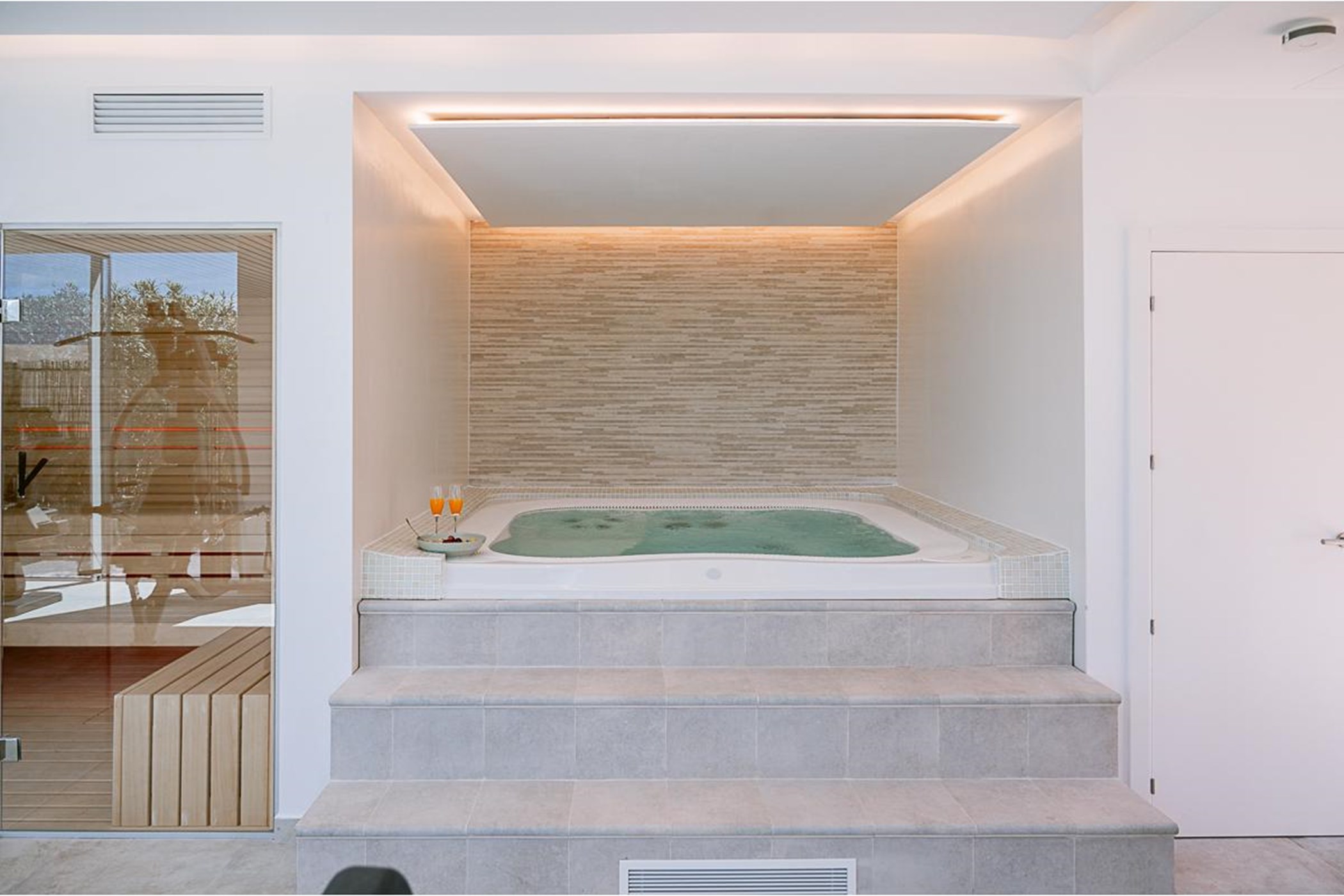 The outside features of Can Melody include an abundance of outdoor terraces where you will find a heated infinity swimming pool, a Jacuzzi, luxurious Balinese beds, ample luxury sun loungers and chill out areas. For entertaining, two dining areas with a BBQ, wood burning oven and an fully fitted outdoor kitchen provide alfresco dining in true style from morning to night. A bespoke bar is the ideal place for sunset cocktails.