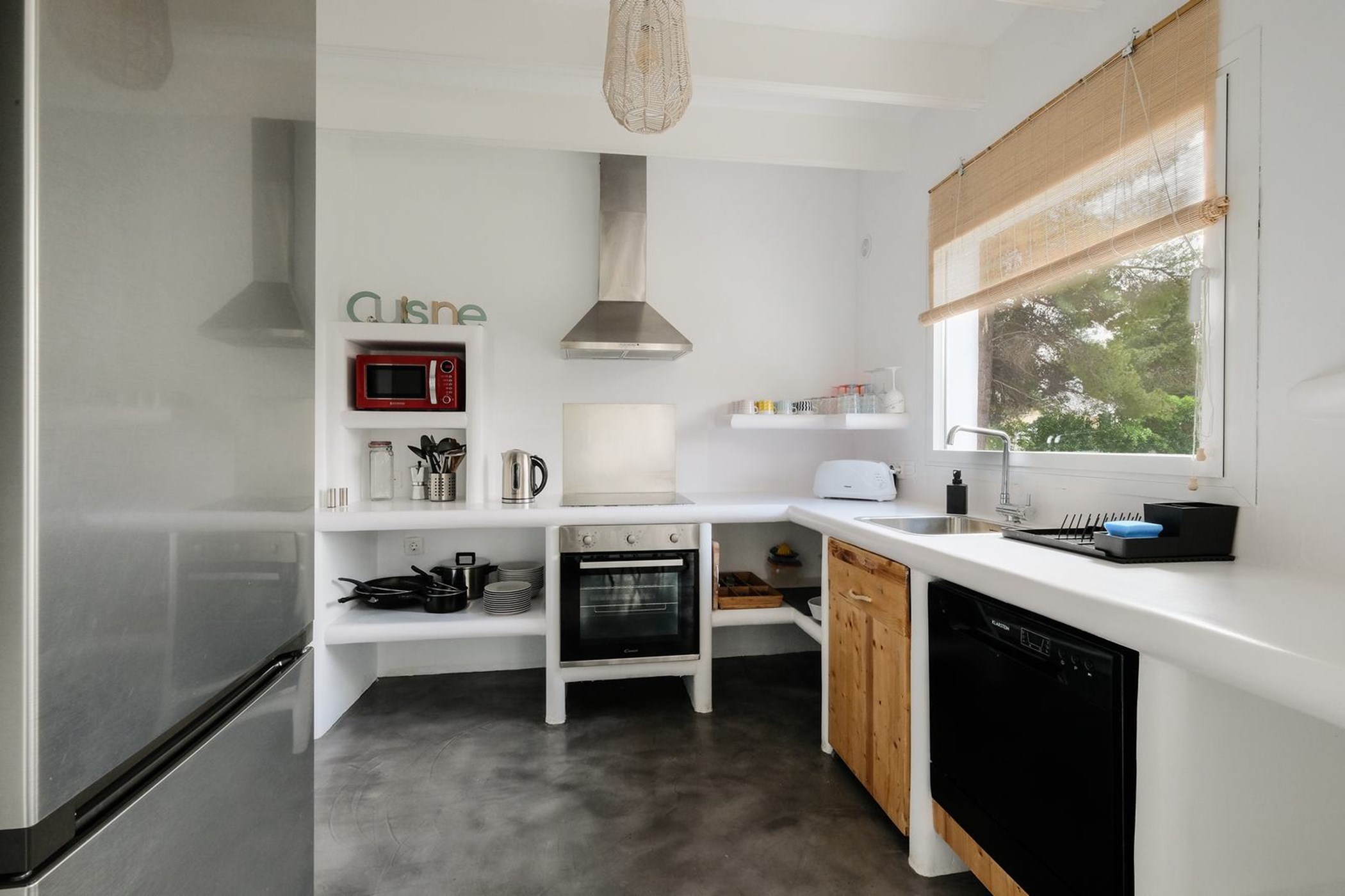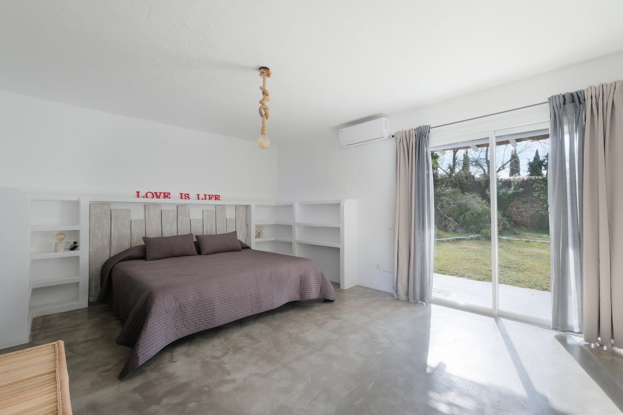 This beautifully restored Ibizan farmhouse, renovated in 2019, is full of character and natural light. Nestled in the exclusive and secure Roca Llisa community—just steps from the golf course—this peaceful retreat is ideally located 15 minutes from both Ibiza Town and Santa Eulalia, and only 10 minutes from the beaches of Cala Llonga and Cala Olivera.