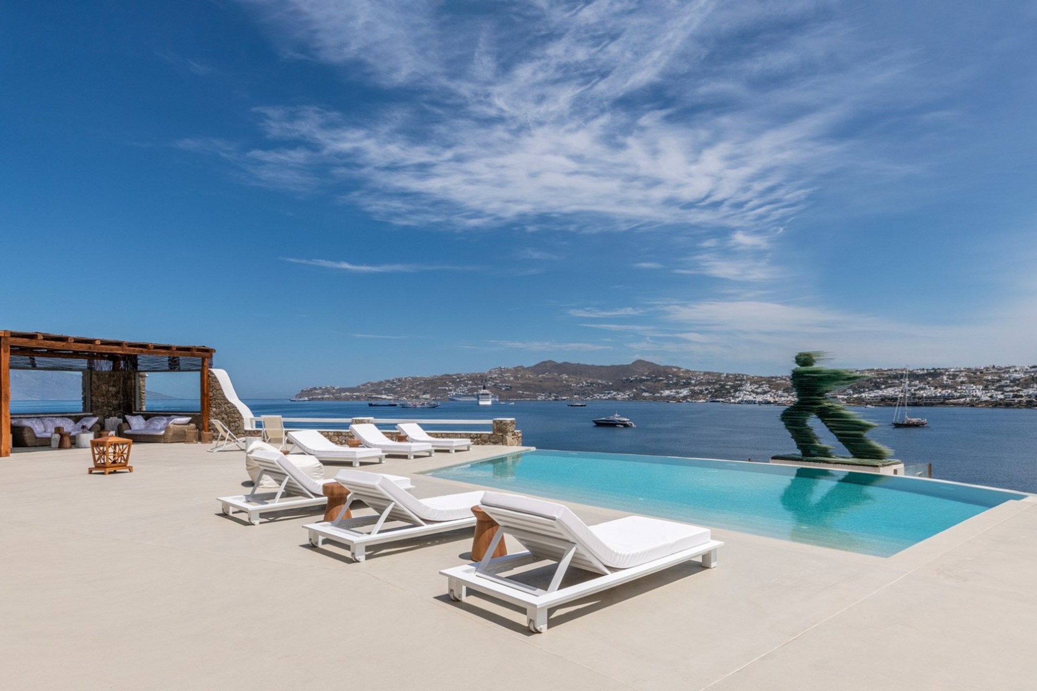 Designed and built to the highest standards, this unique private villa is the ideal destination to awaken your senses, Relax and share moments under the Greek sun and the starry night skies of Mykonos. Boasting the most astonishing panoramic sea and sunset views, over Mykonos port and town.