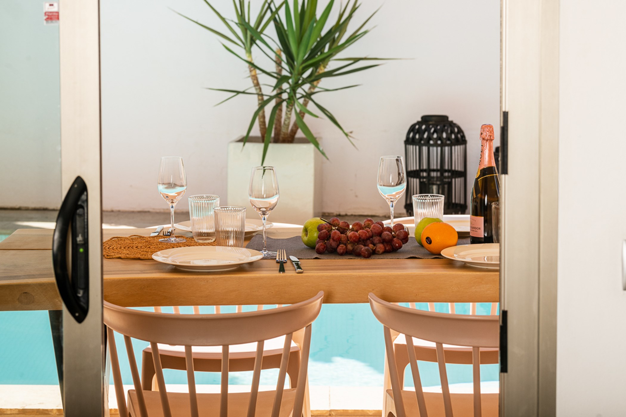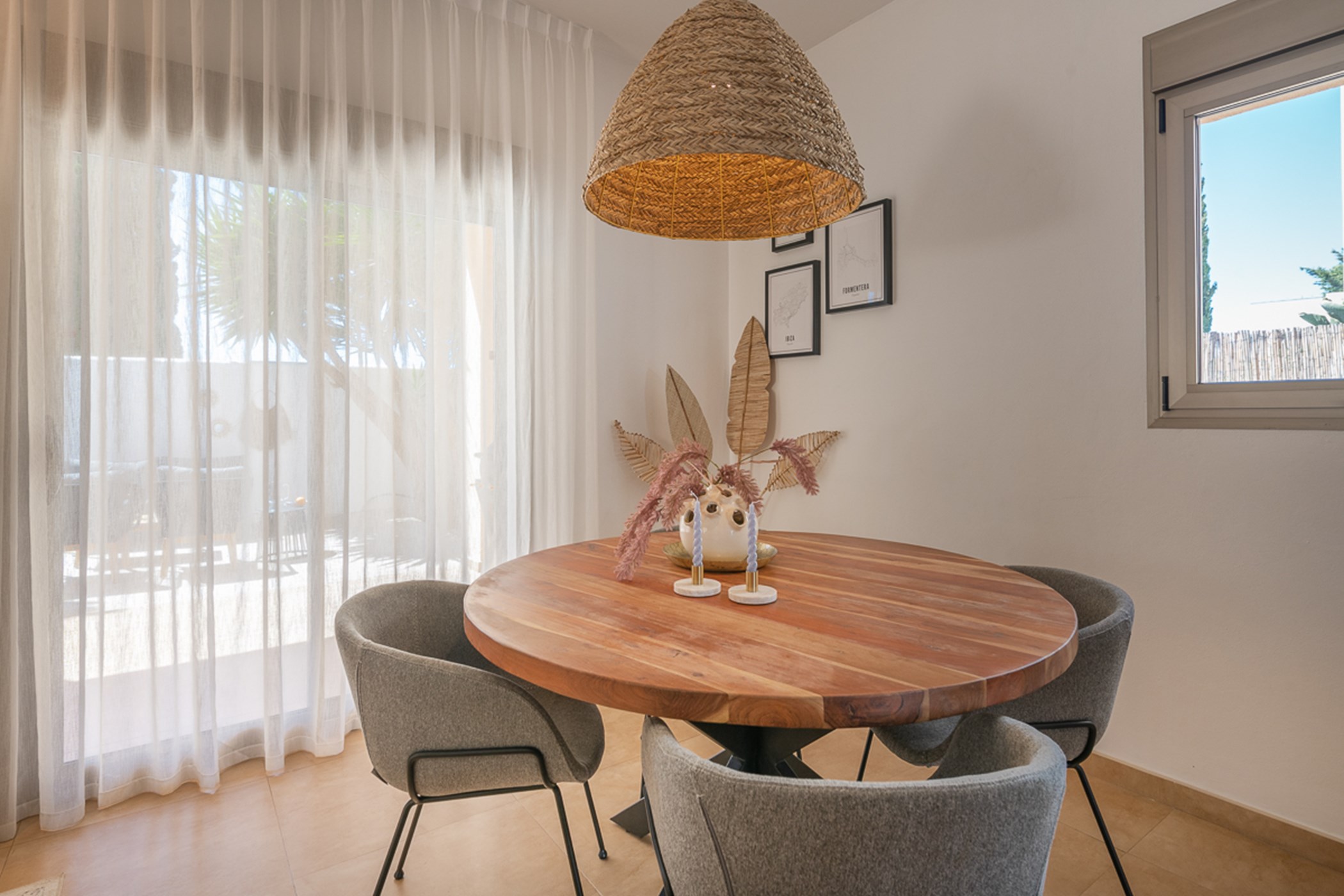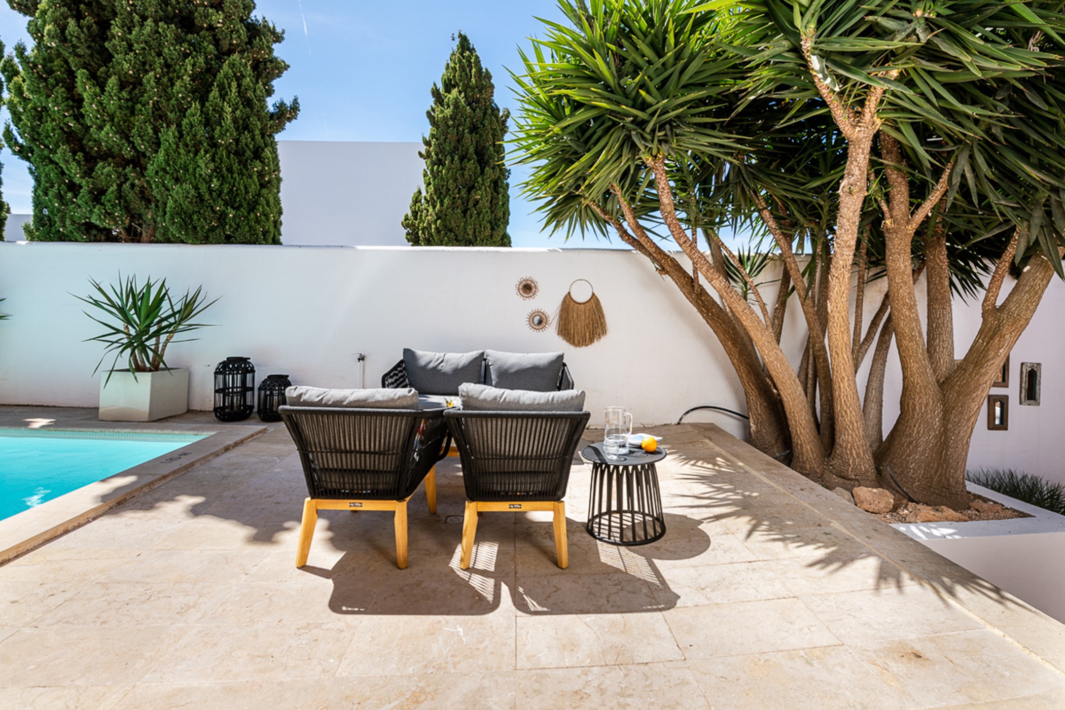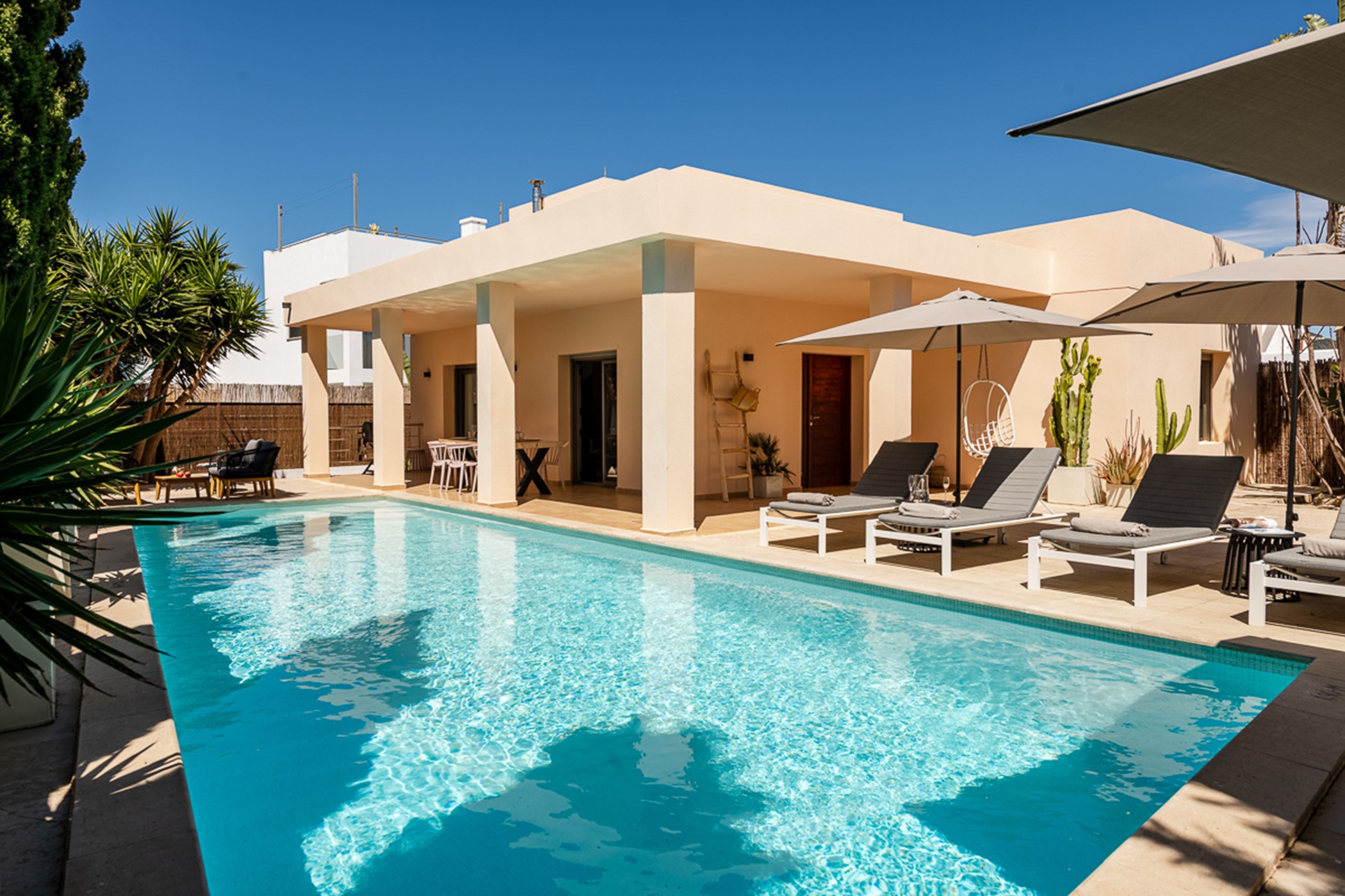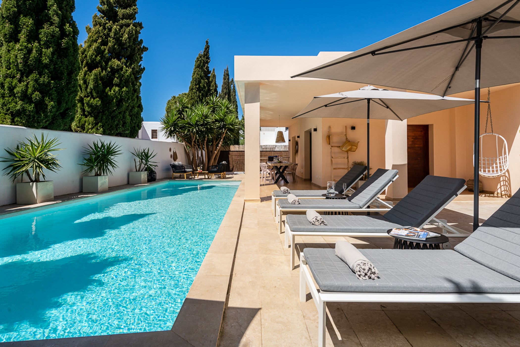 Perfectly formed for a small family or two couples, this beautiful villa offers surprisingly spacious living space in which to stretch out and enjoy the Ibizan sun. It is perfectly positioned too; just a ten-minute stroll from the white sands of Talamanca beach and a five-minute drive from the sights and sound of Ibiza Town. Even closer are the bars and restaurants of Marina Botafoch.