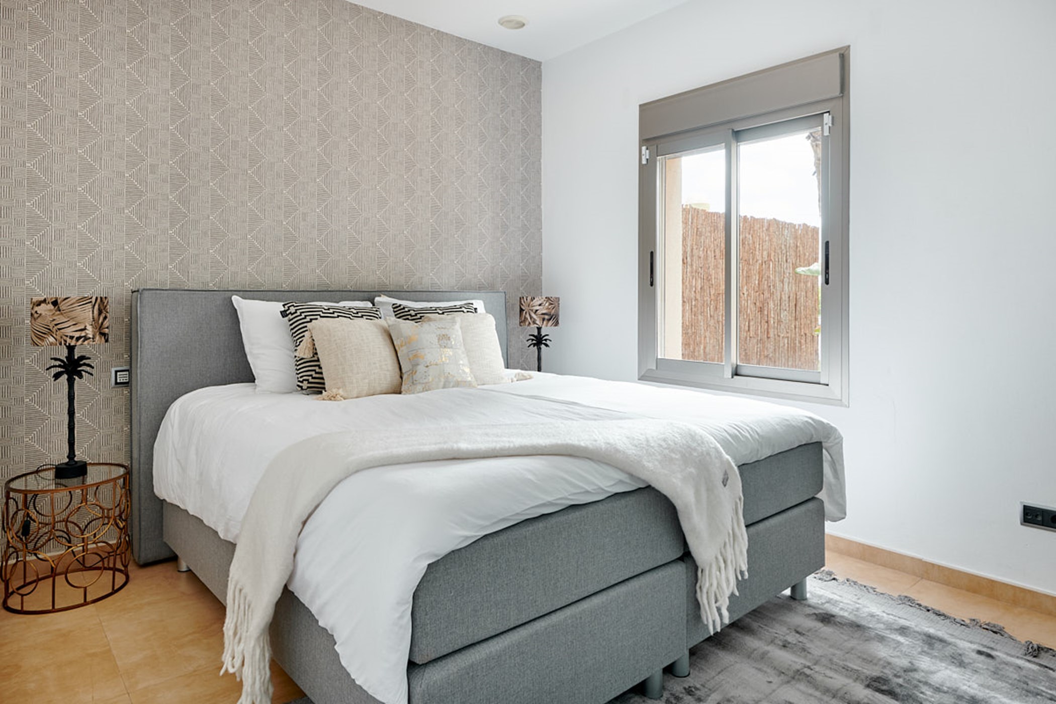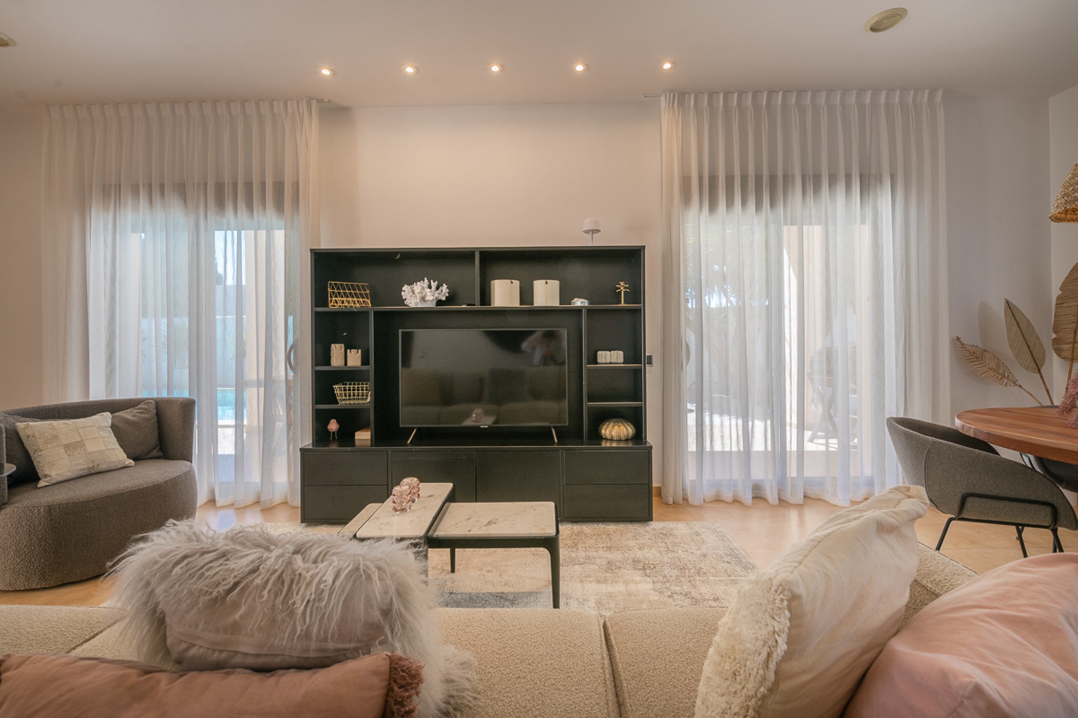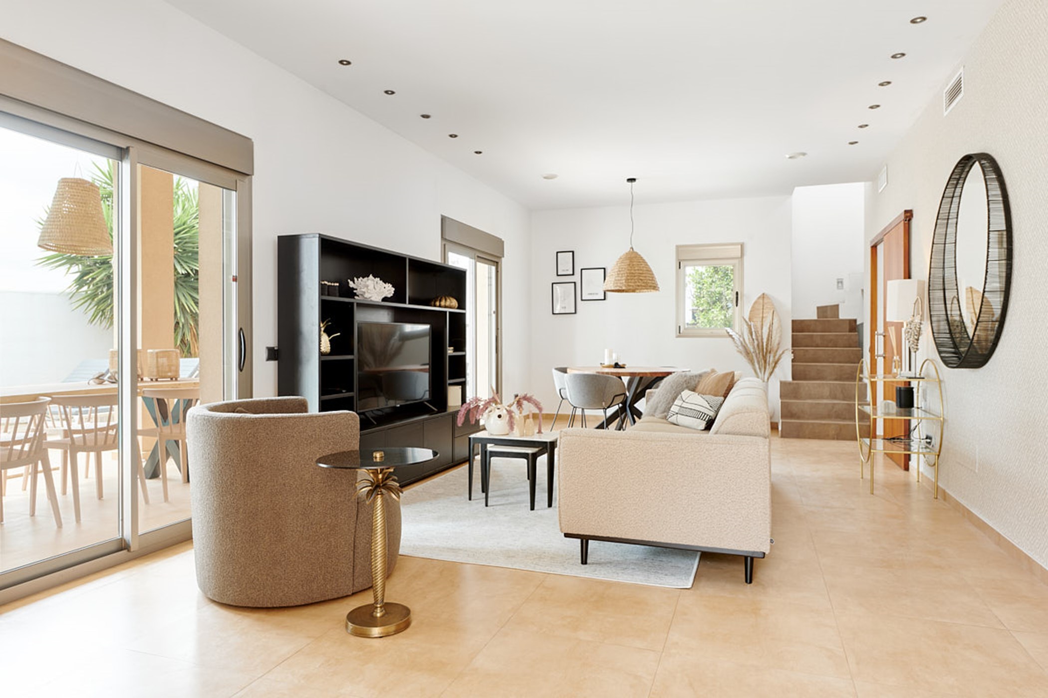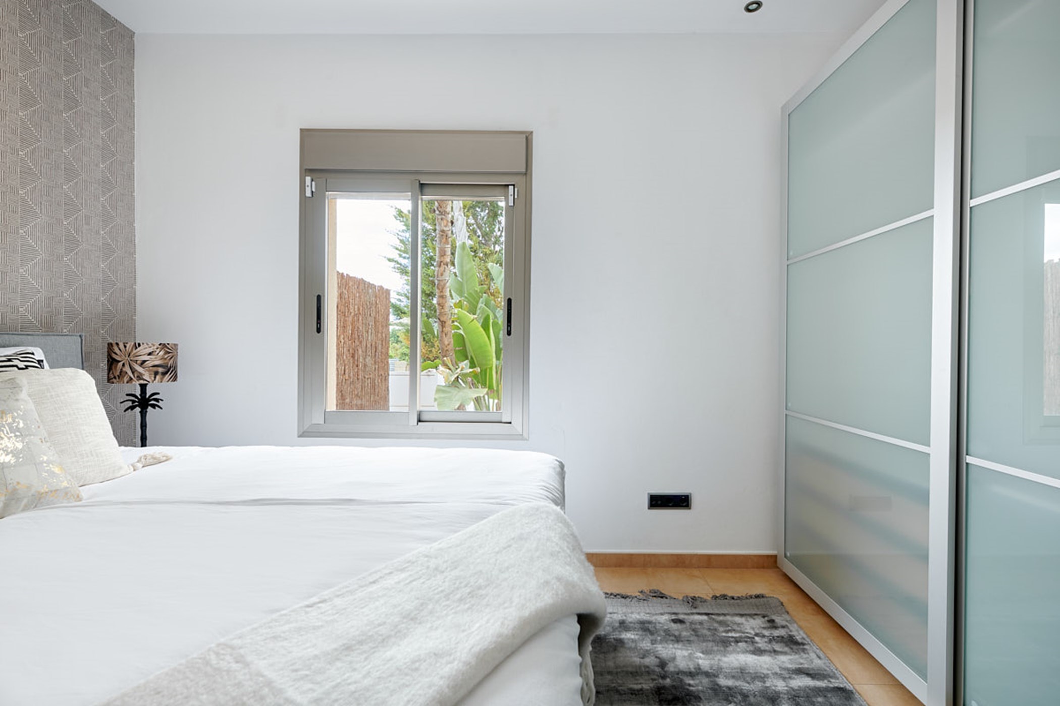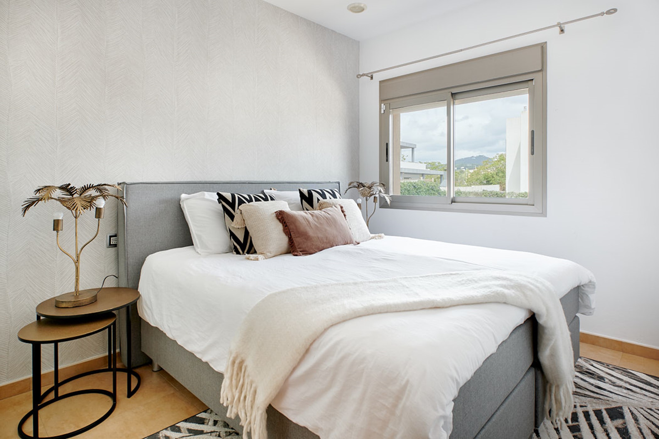 Perfectly formed for a small family or two couples, this beautiful villa offers surprisingly spacious living space in which to stretch out and enjoy the Ibizan sun. It is perfectly positioned too; just a ten-minute stroll from the white sands of Talamanca beach and a five-minute drive from the sights and sound of Ibiza Town. Even closer are the bars and restaurants of Marina Botafoch.