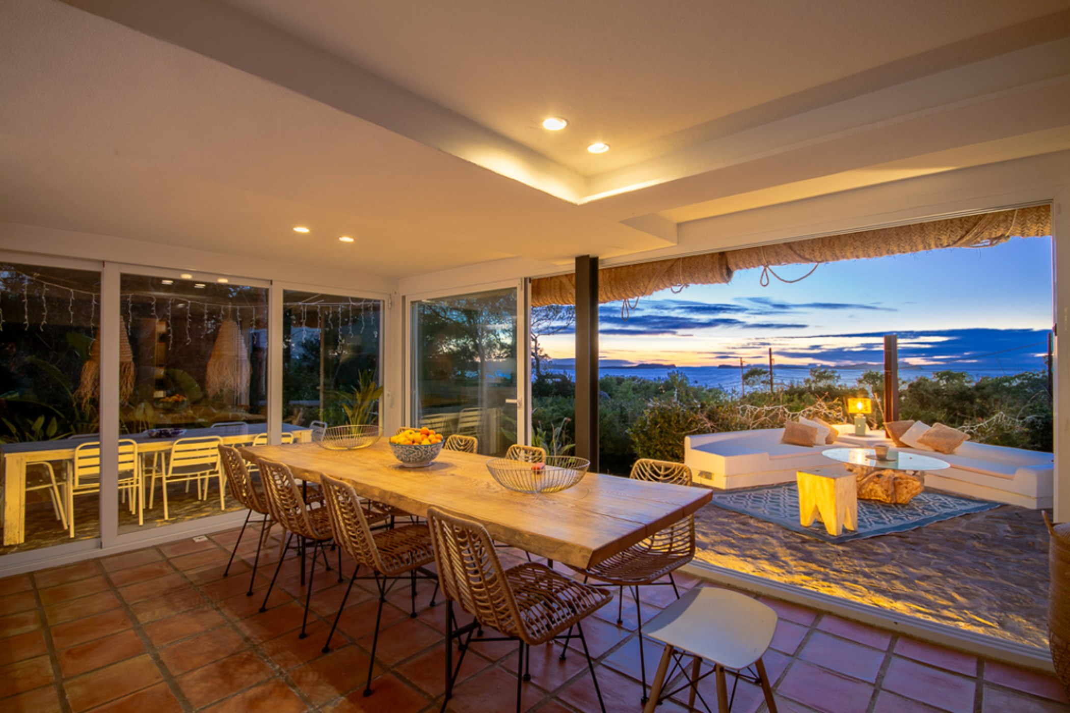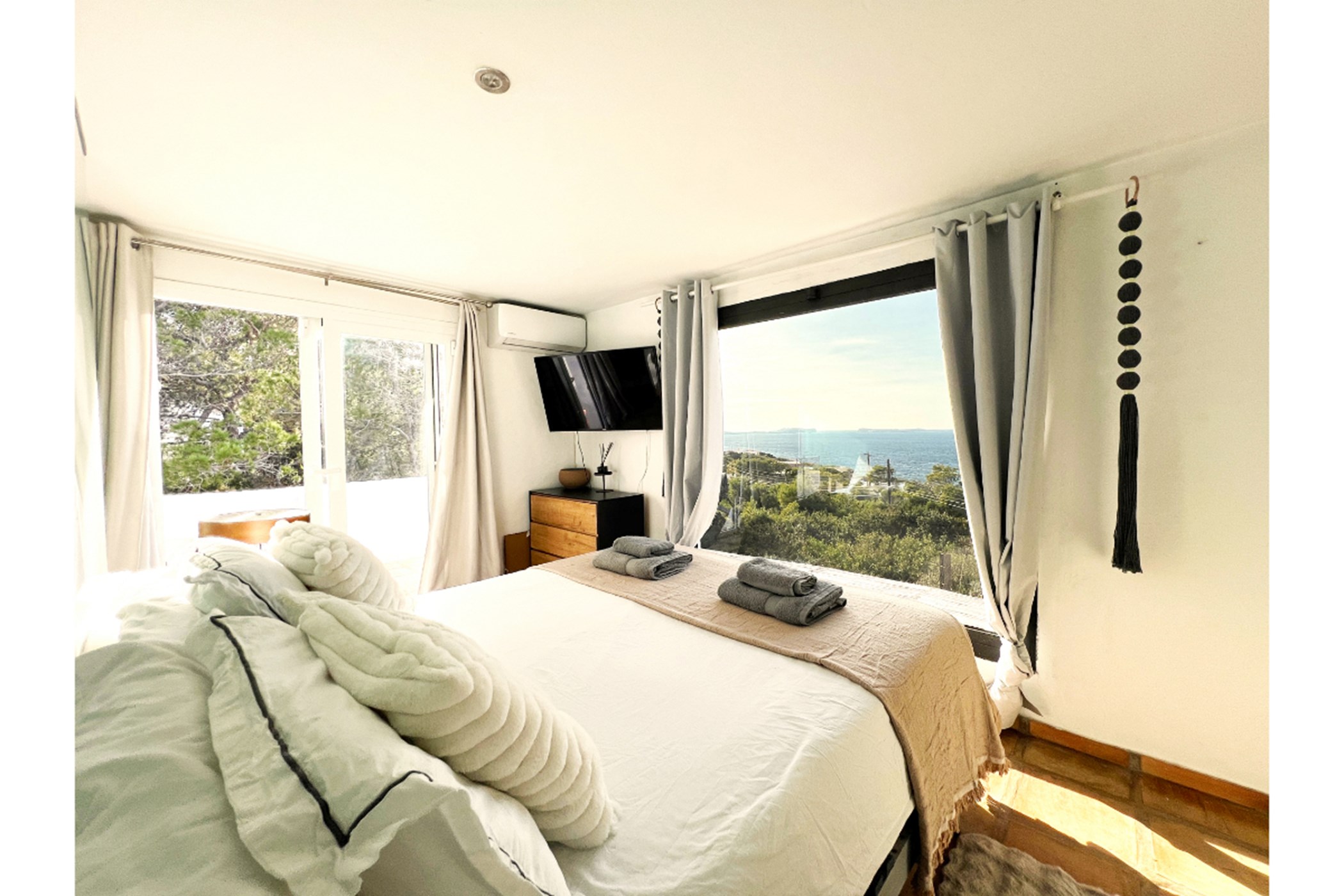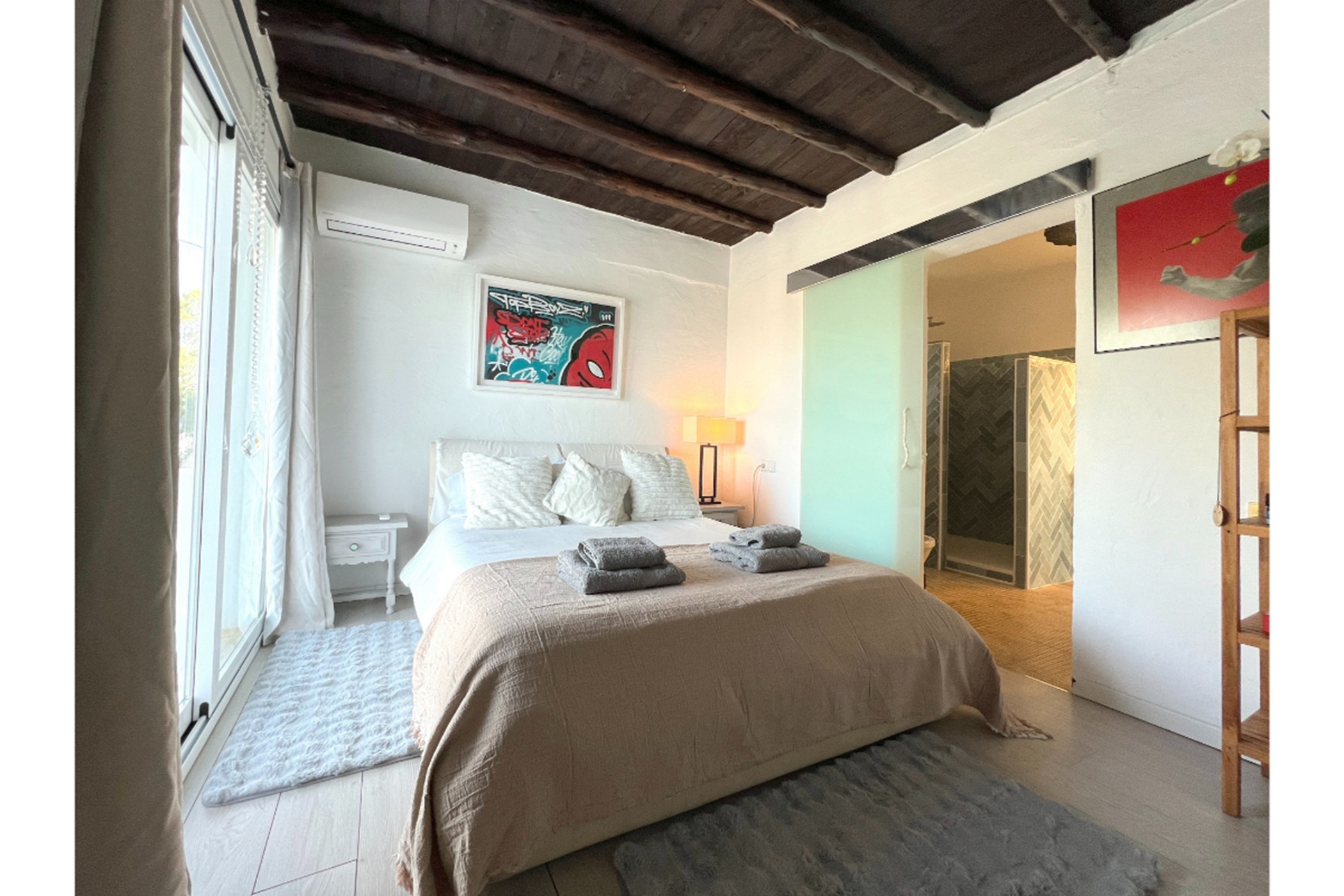 Indulge in the epitome of Ibiza luxury living with our exclusive Mediterranean villa nestled near the serene shores of Cala Salada. Offering a seamless fusion of style and comfort, this enchanting retreat boasts four spacious bedrooms and four elegant bathrooms, ensuring ample space for up to eight guests.