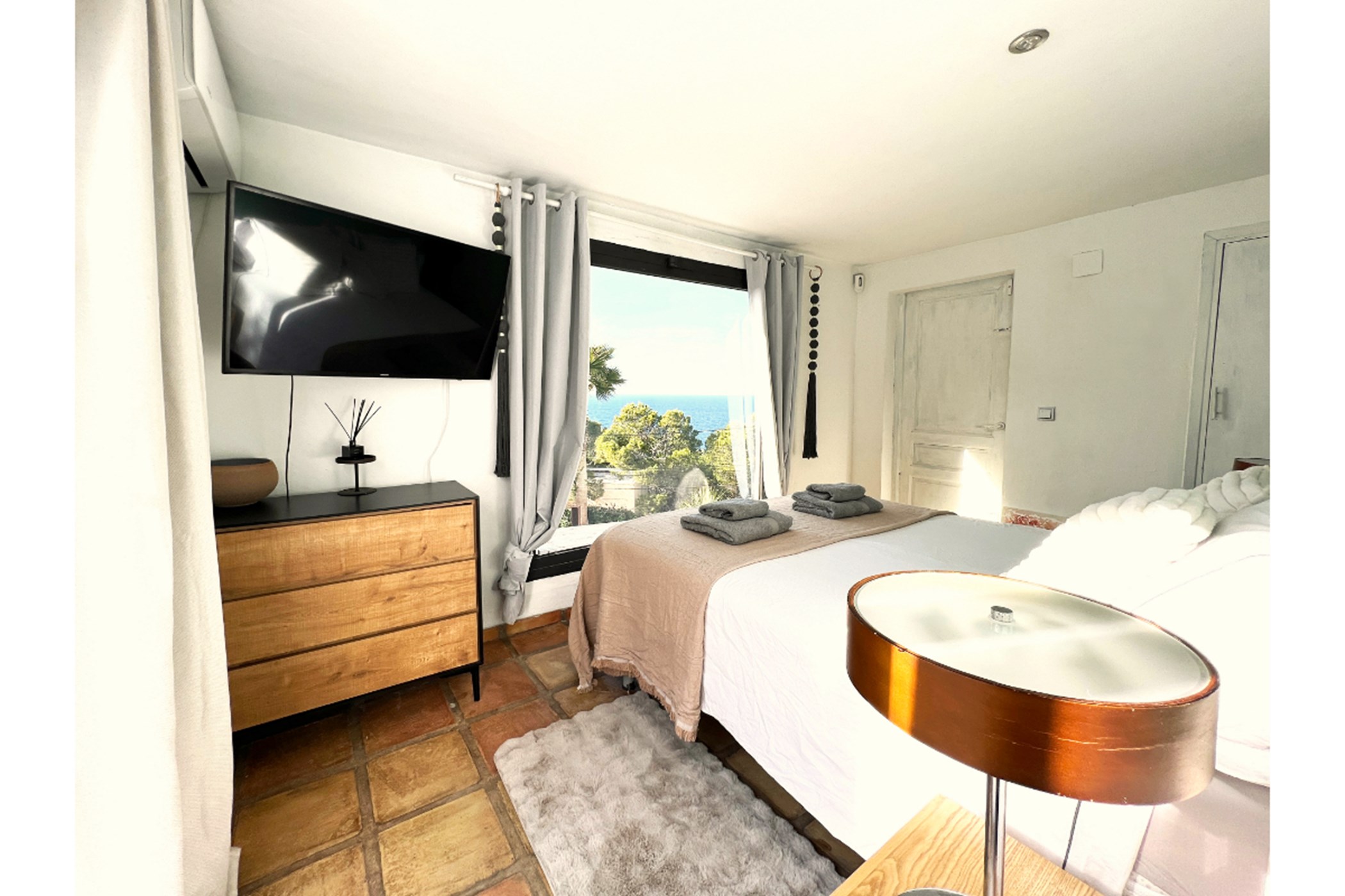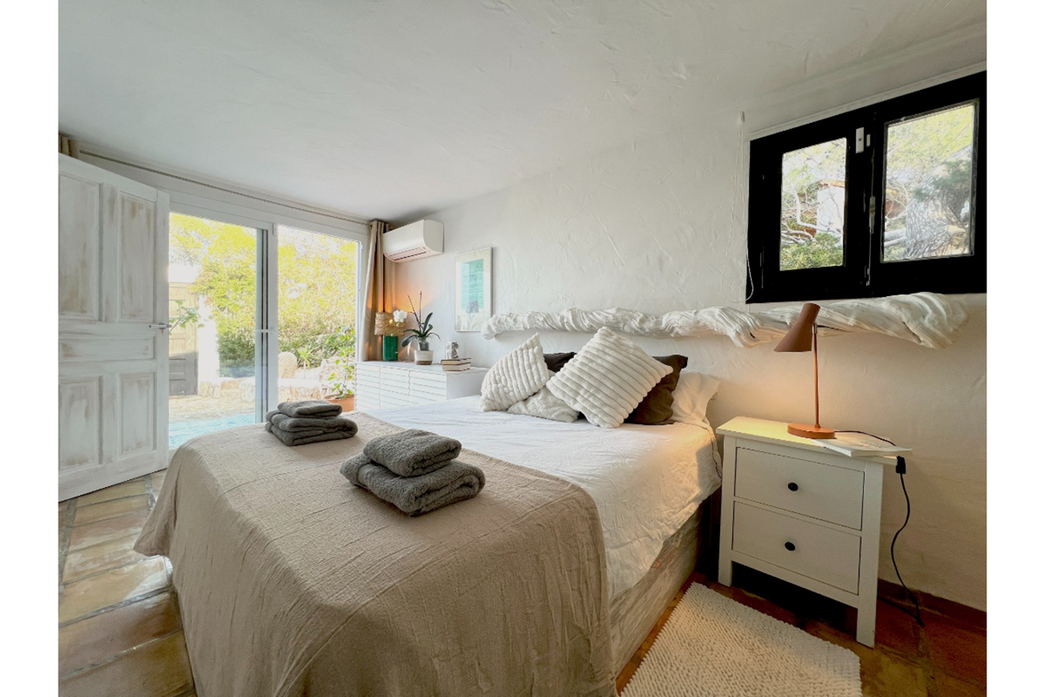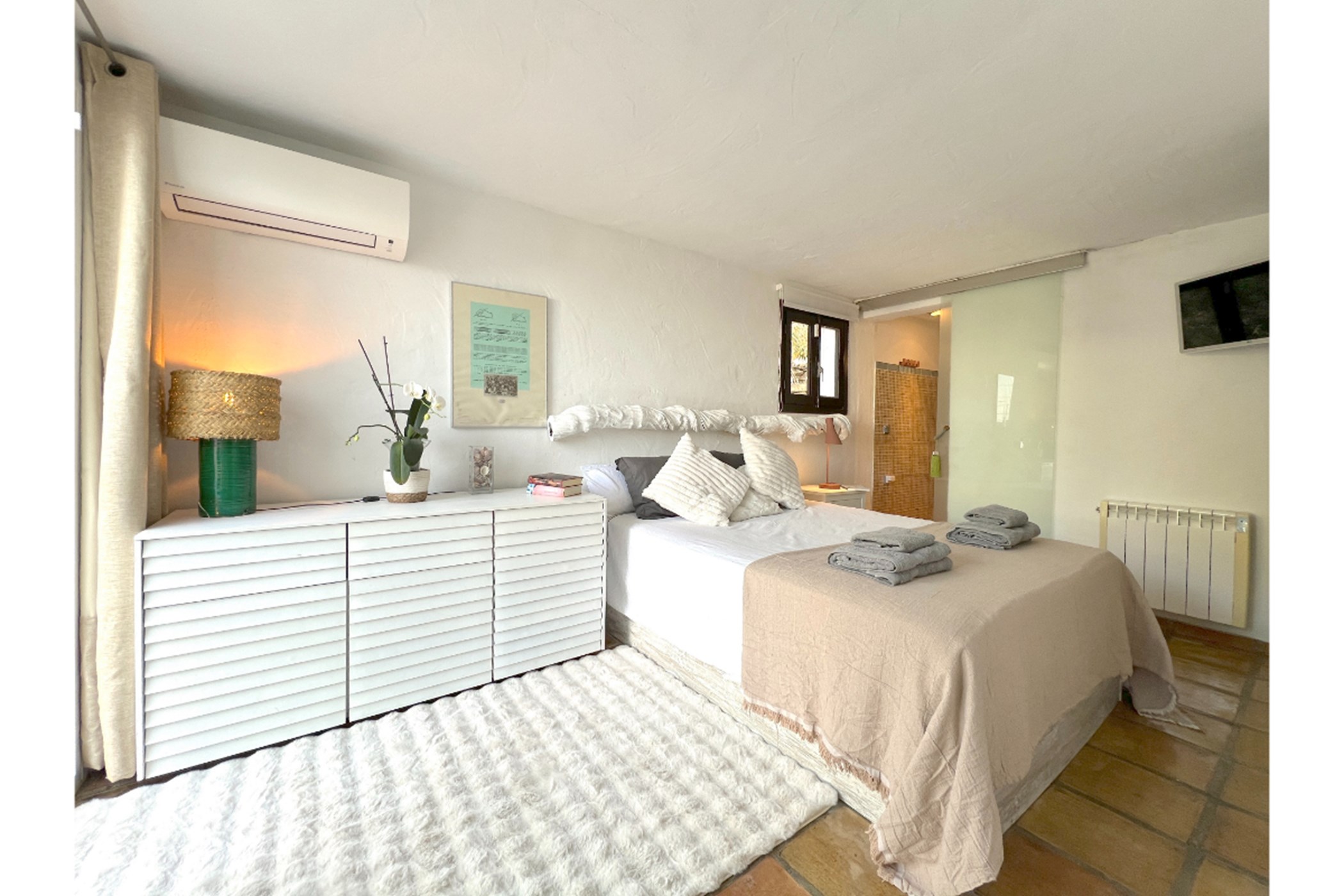 Indulge in the epitome of Ibiza luxury living with our exclusive Mediterranean villa nestled near the serene shores of Cala Salada. Offering a seamless fusion of style and comfort, this enchanting retreat boasts four spacious bedrooms and four elegant bathrooms, ensuring ample space for up to eight guests.